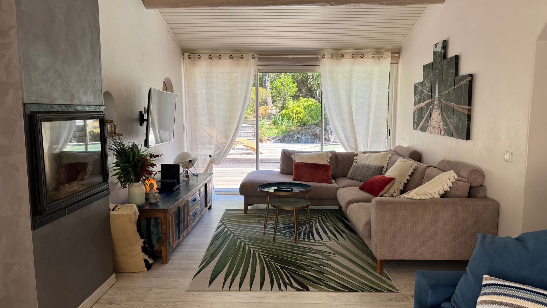 Le vaste salon climatisé offre un espace de détente convivial, avec ses